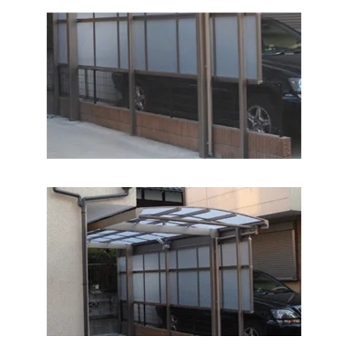 フェンスとカーポートへのパネル追加によって、目隠しを行った施工事例です。