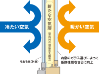 住宅は壁や屋根などに断熱構造を持っていますが、窓については断熱性の乏しい部分です。夏期冬期における冷暖房効率の悪さは、ほぼ窓の断熱性の低さが引き起こしていると言っても過言ではありません。内窓を設置、そして最適なガラス選びをすることで、断熱性/遮熱性の向上に大きな効果が期待できます。